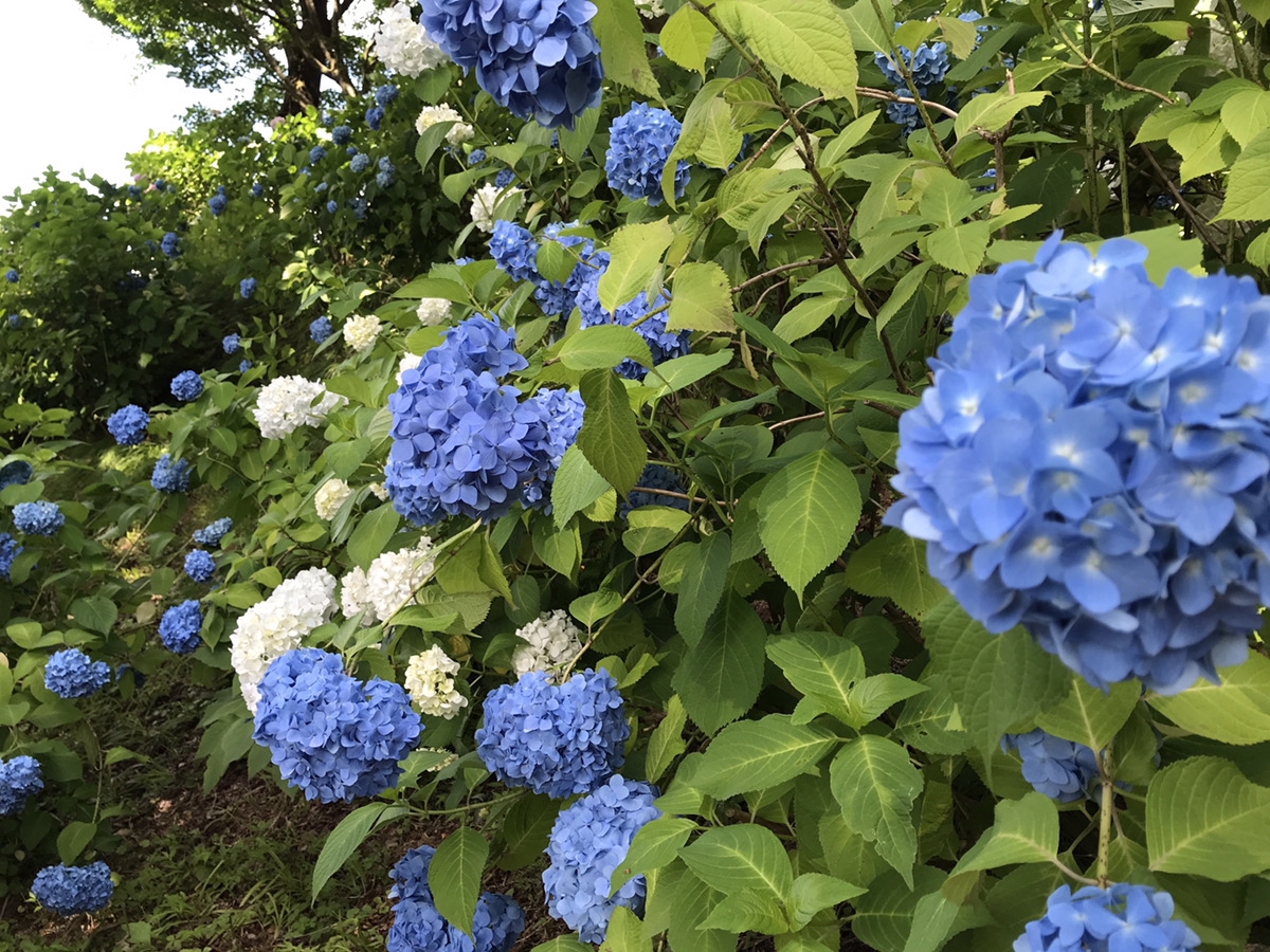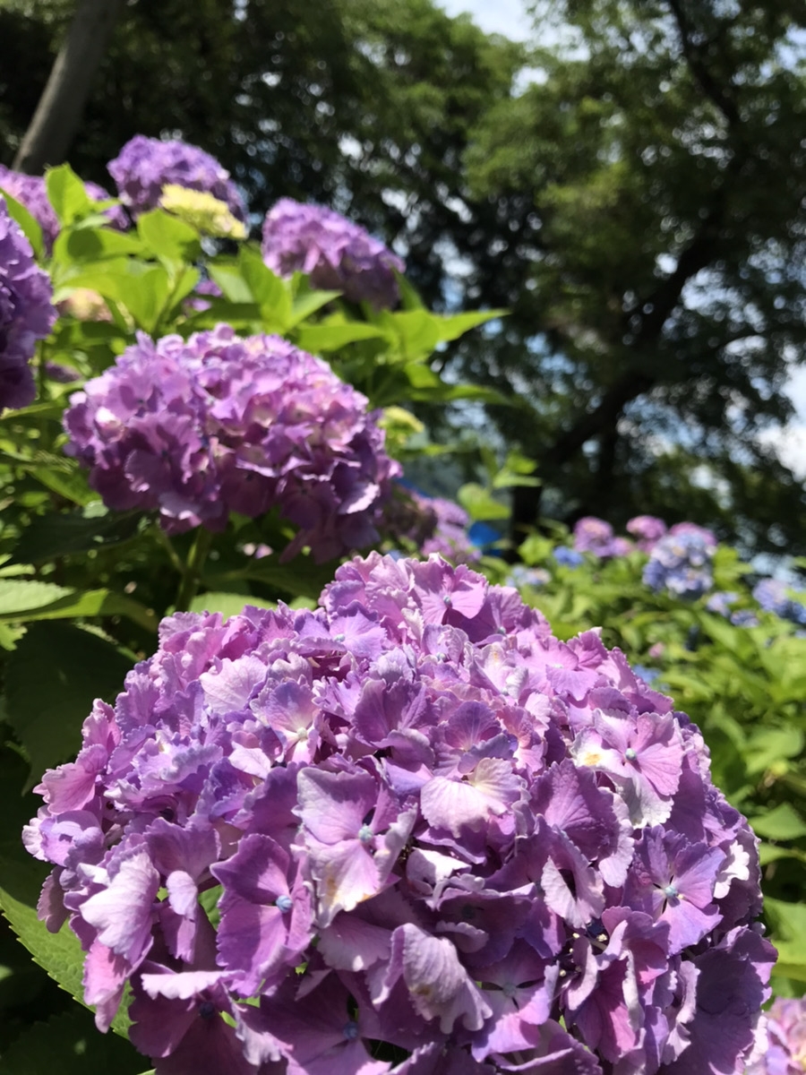 こんにちは。 梅雨が明けたら一気に暑くなりましたね。 熱中症に気を付けましょう。 そんな梅雨が明ける前の6月末にあじさいを見に行ってきました。 天気も良かったので、少し遠出して田上にある護摩堂山のあじさい園まで行ってきました。 看板が隠れるくらいあじさいが咲き誇っていました。 色も様々でとてもきれいでした。 山の上なので、運動不足の解消にもなりました。 来年は皆さんもどうですか?