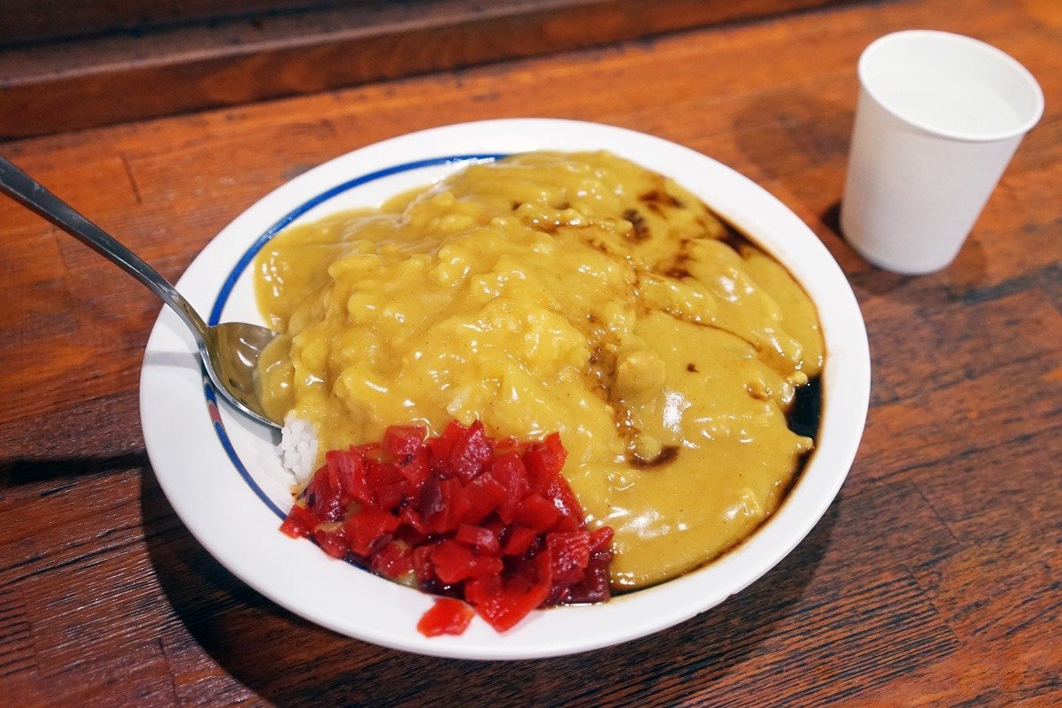 メディアシップのそばにあるバスセンターのカレー。昭和の香りのする黄色いカレー。新潟のB級グルメの大定番。