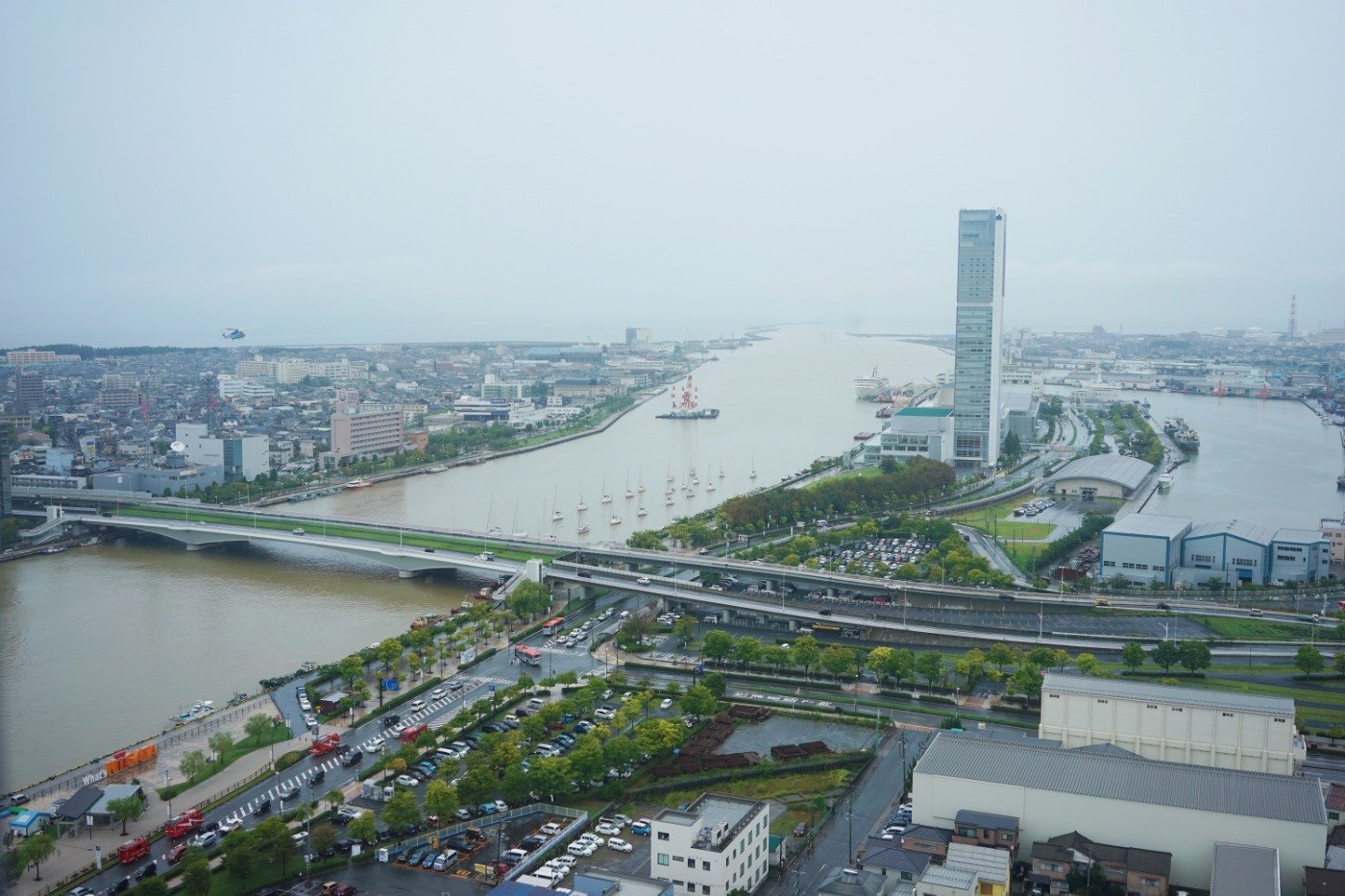 朱鷺メッセ展望台からは信濃川や阿賀野川、鳥屋野潟など新潟の複雑な川の流れを一望できるスポット。