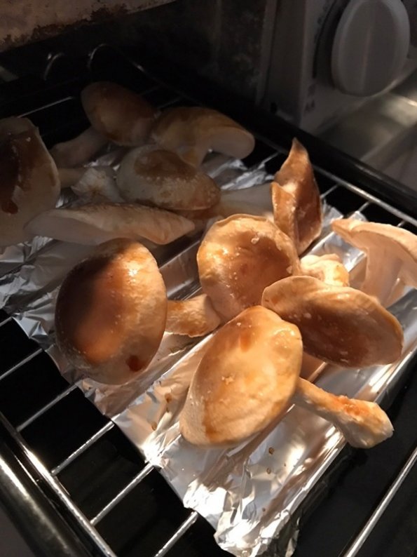 初収穫のシイタケは、素材の味を楽しもうと、そのままグリルへIN!