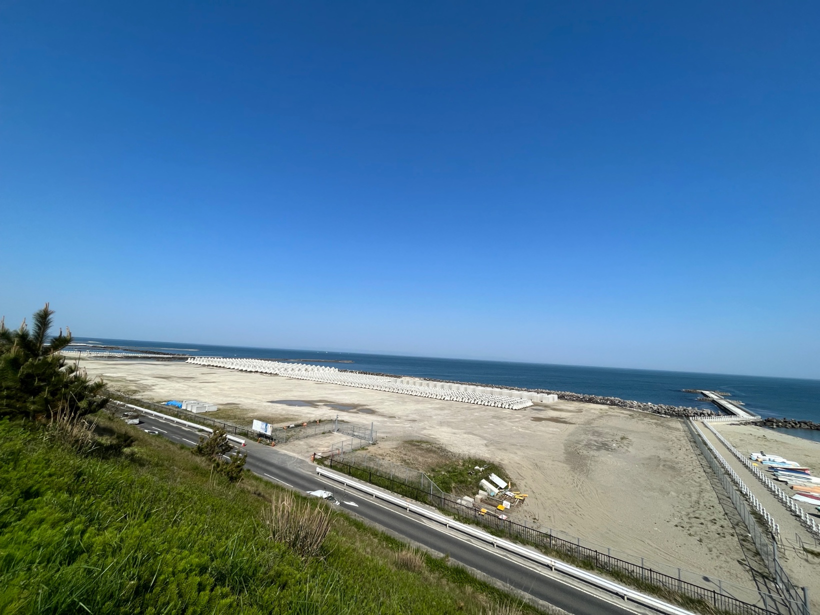 信濃川の関屋分水の河川敷を渡って、海の方に出て日本海沿いを走ります。気持ちいい。