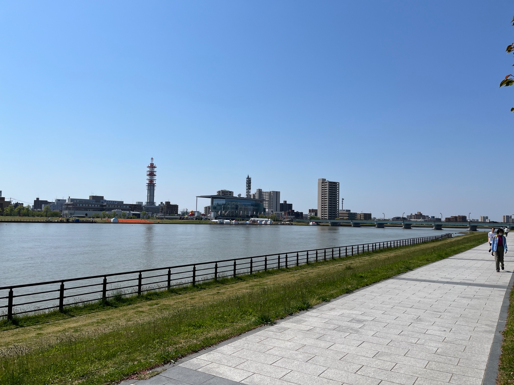 景色が広がって、風が吹いていて(結構きつい風の時もありますが)、新潟市も河川敷をかなり整備したんだなと感心しました。