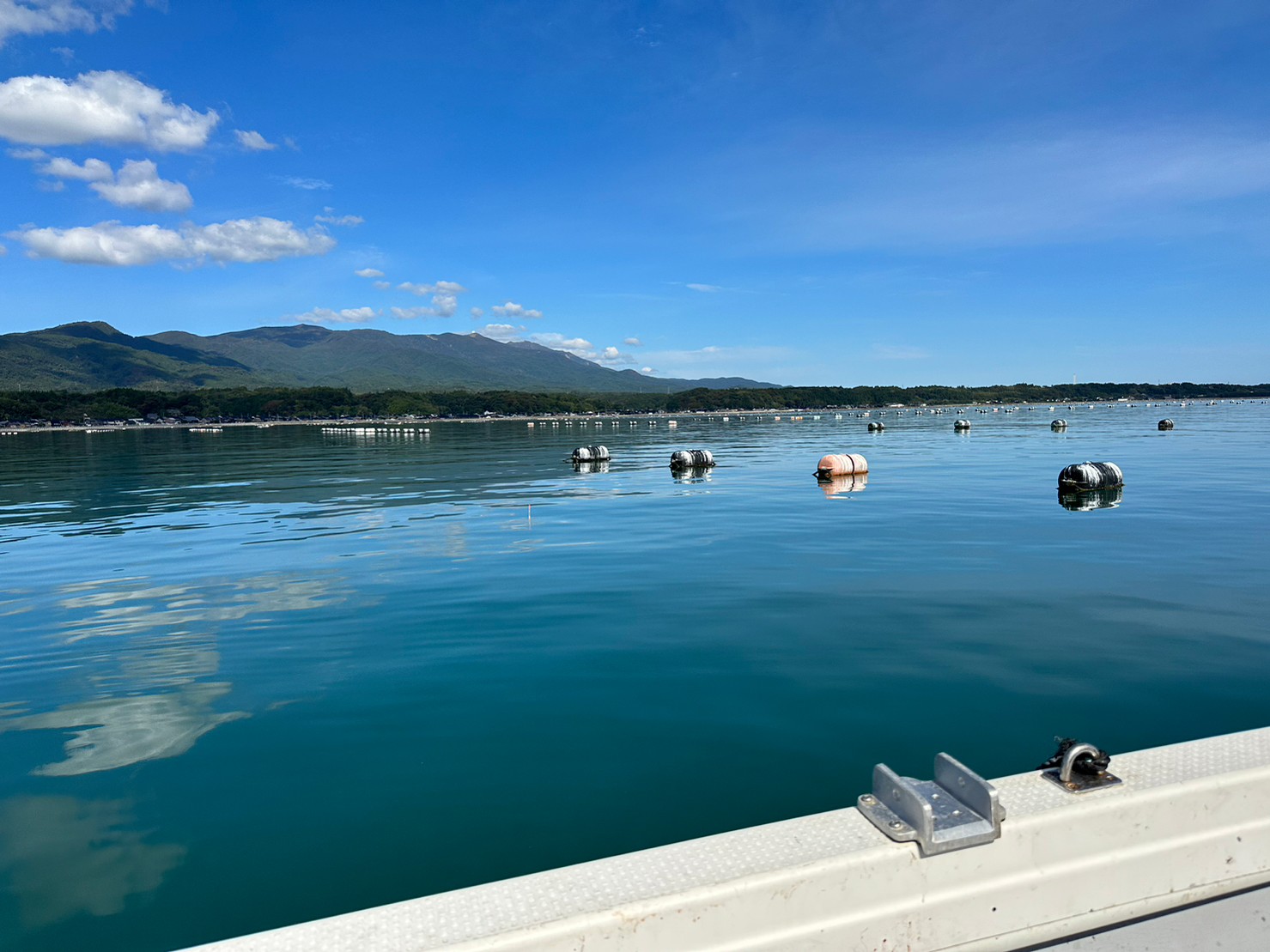 そしてせっかくなので佐渡を満喫しようということで、今年(写真は10月のもの)は真野湾にある牡蠣養殖のイカダ脇でのクロダイ釣りに行ってきました。一般的にクロダイ釣りというと磯に行って釣るもので、なかなか釣れない引きのいい魚ということで釣り人にとっても人気の魚です。