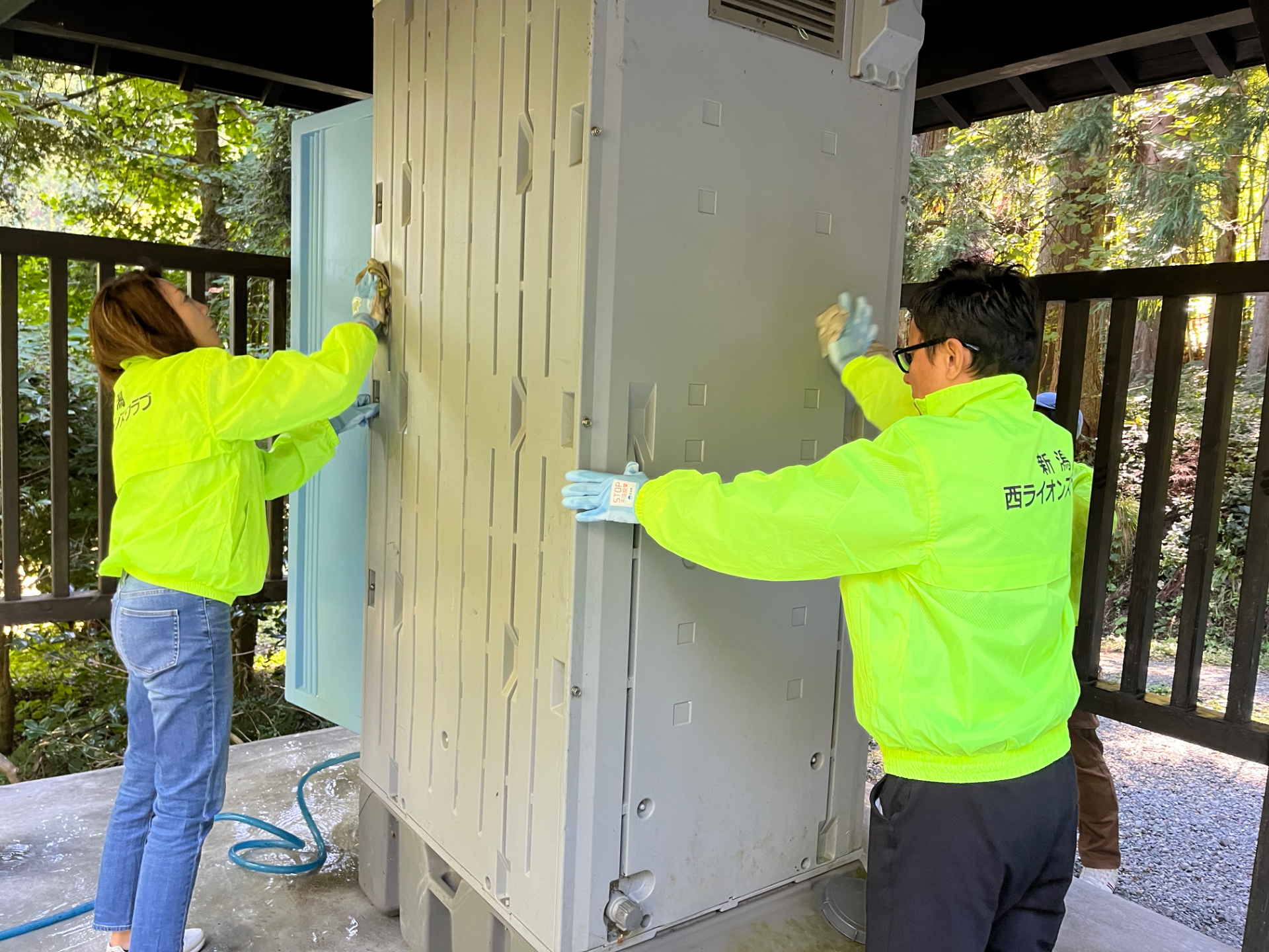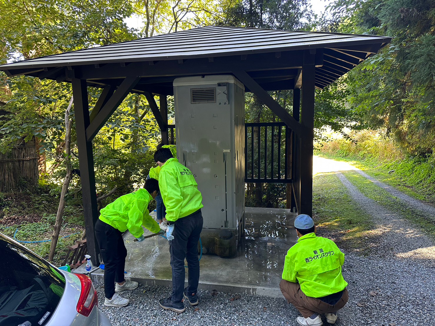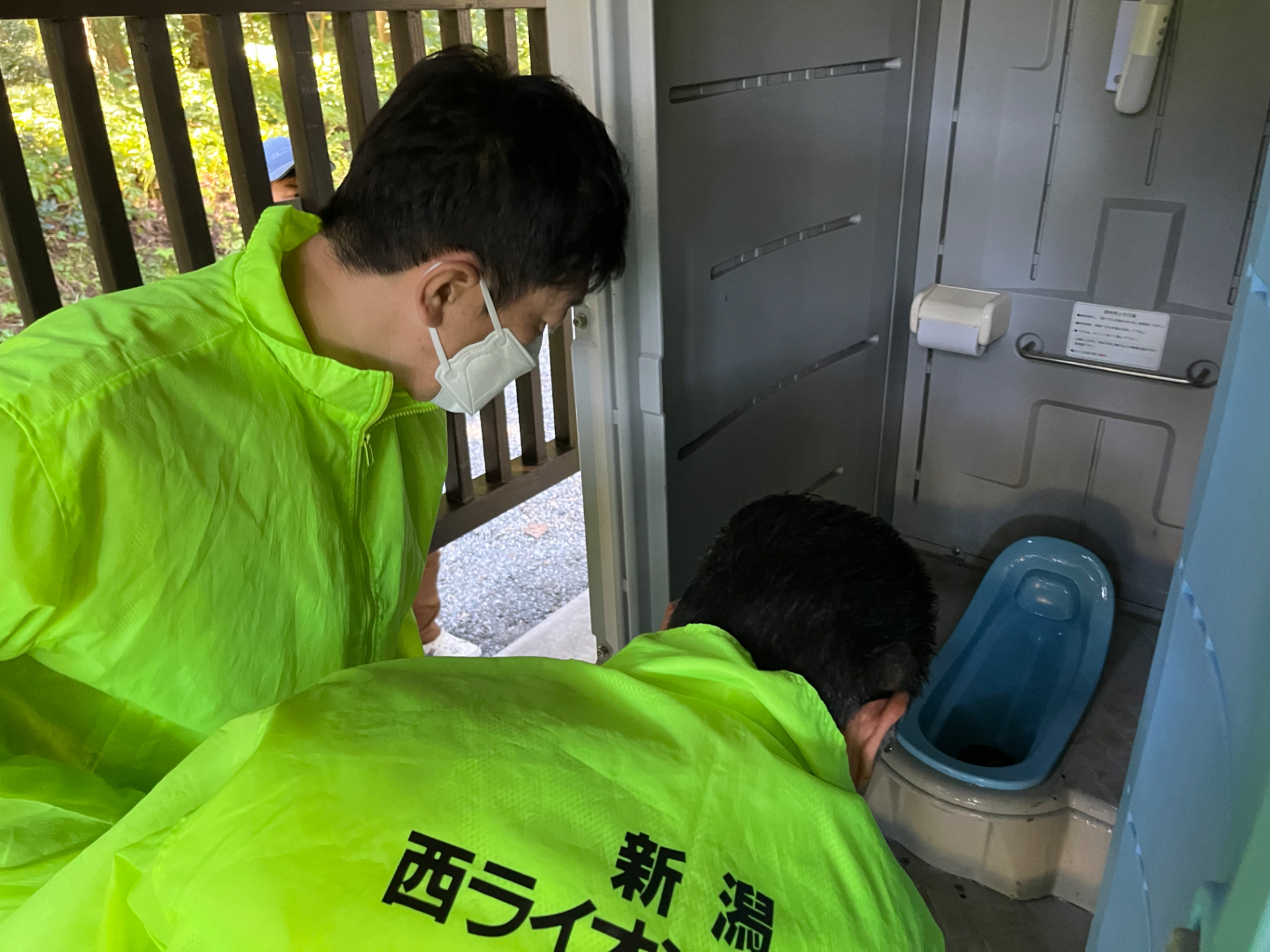 私が所属している新潟西ライオンズクラブでは認証50周年記念の際に、トキ野生復帰にご尽力されている「生椿の自然を守る会」の高野毅(たかの たけし)さんの生家があった佐渡の生椿(はえつばき)の朱鷺の餌場となるビオトープ脇にトイレを寄贈しました。ここのビオトープには、各地方から子供達が学びの機会としてビオトープ清掃にきていましたが、トイレがなかったために、当クラブが過去に寄贈したという経緯があります。