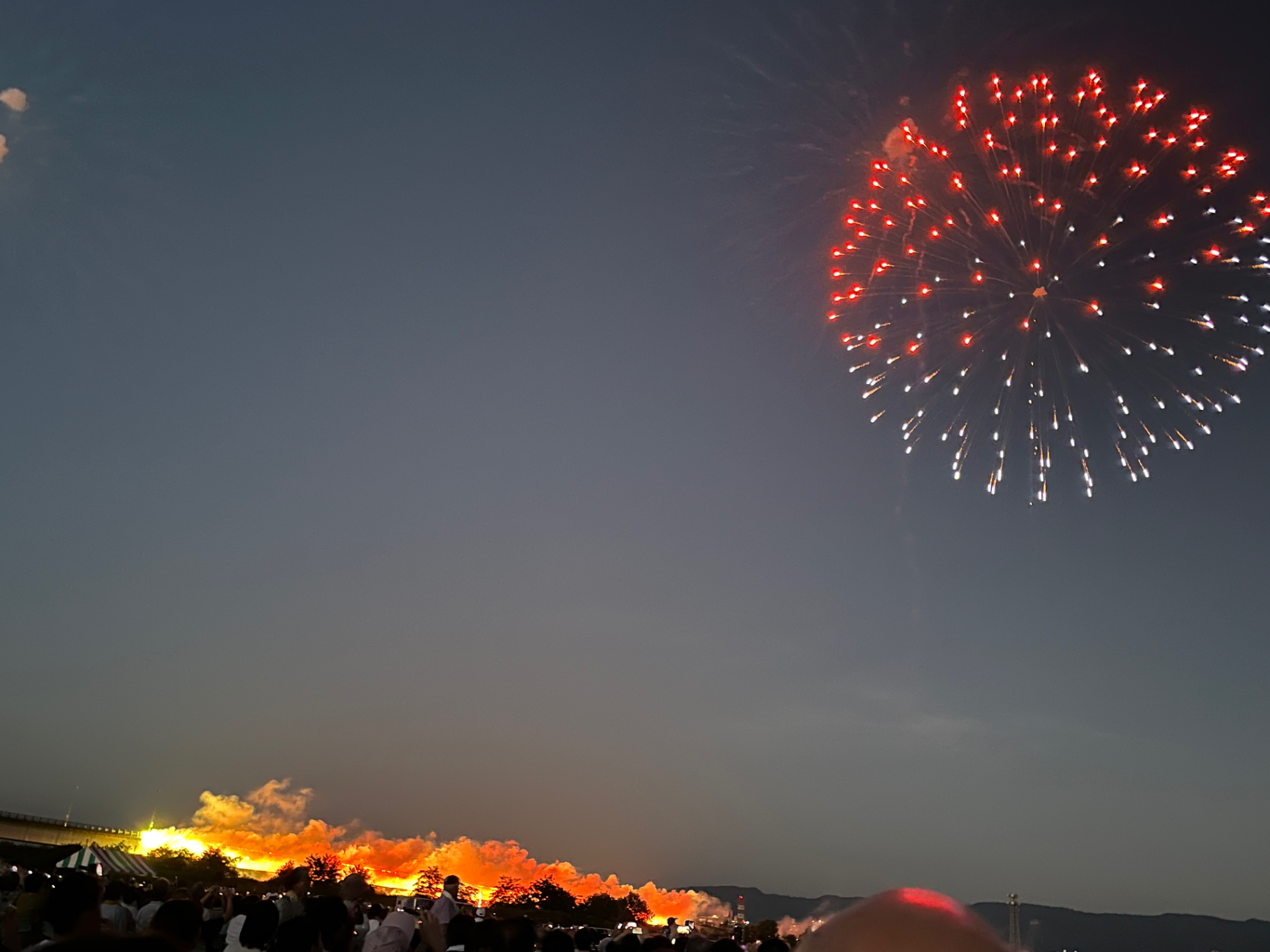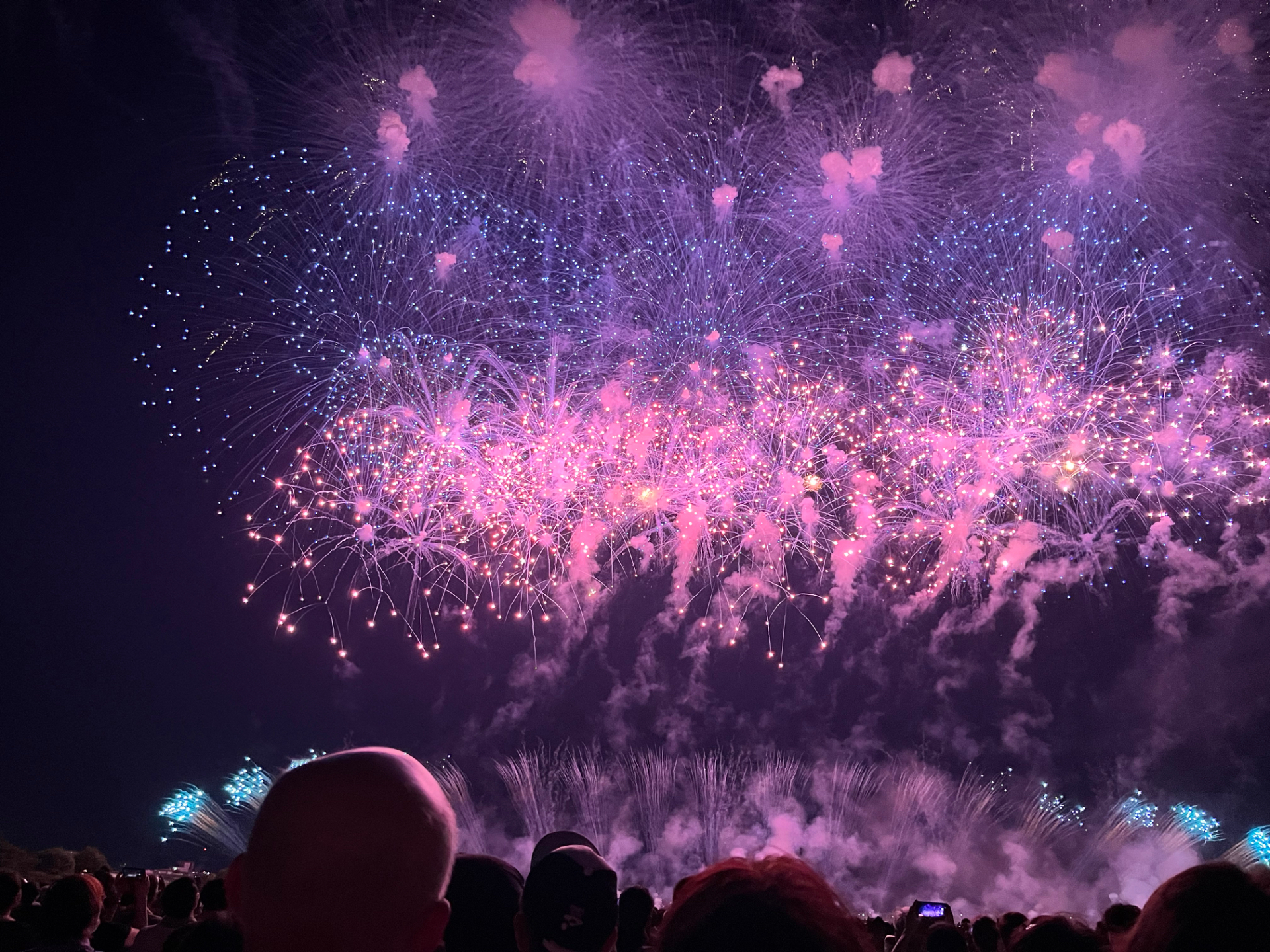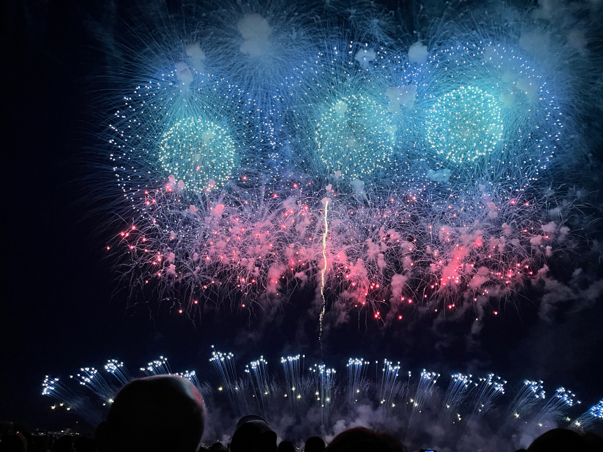 観覧席が打ち上げ場所から近いこともあり、花火と音の大きさには圧巻です。