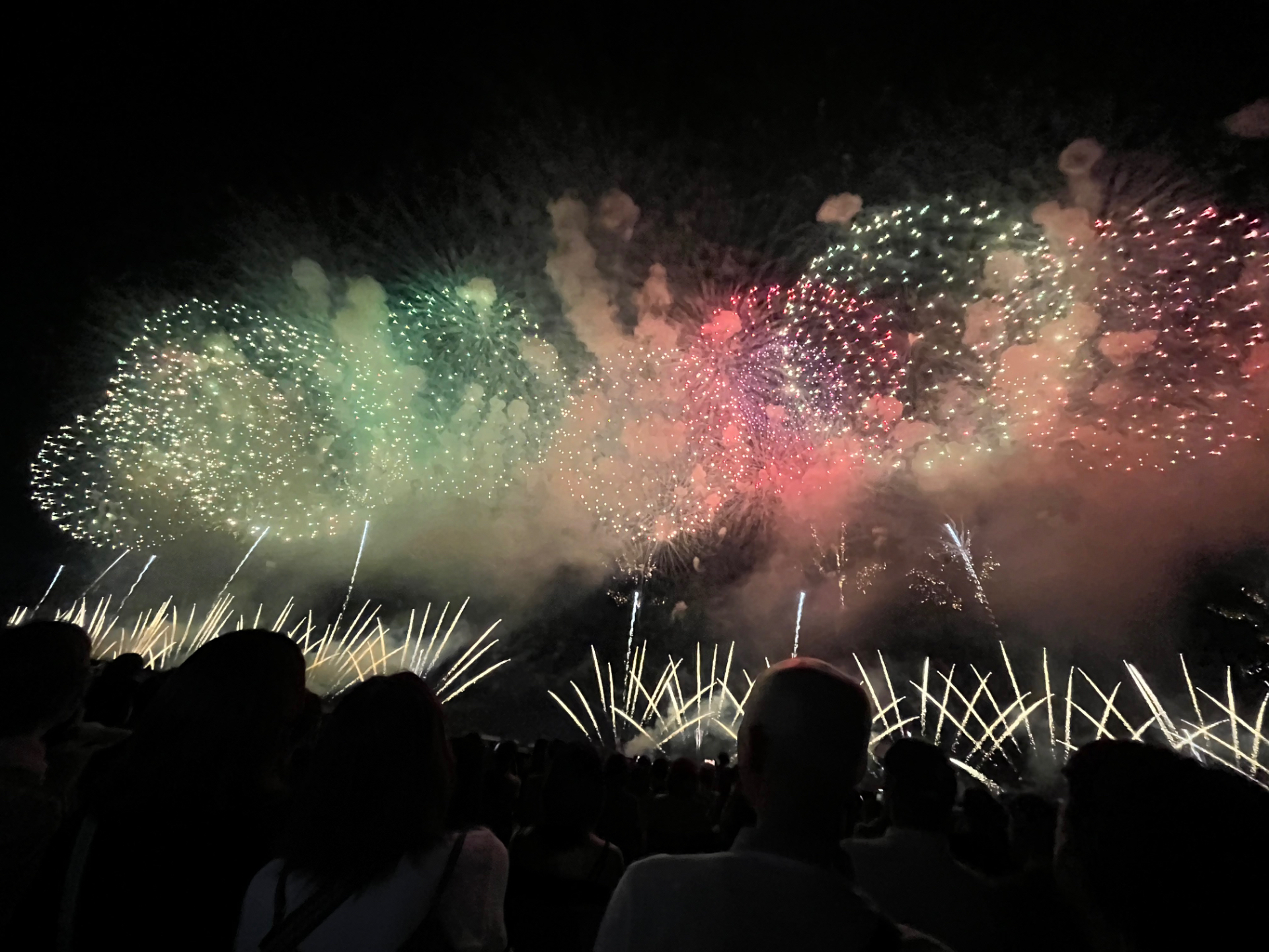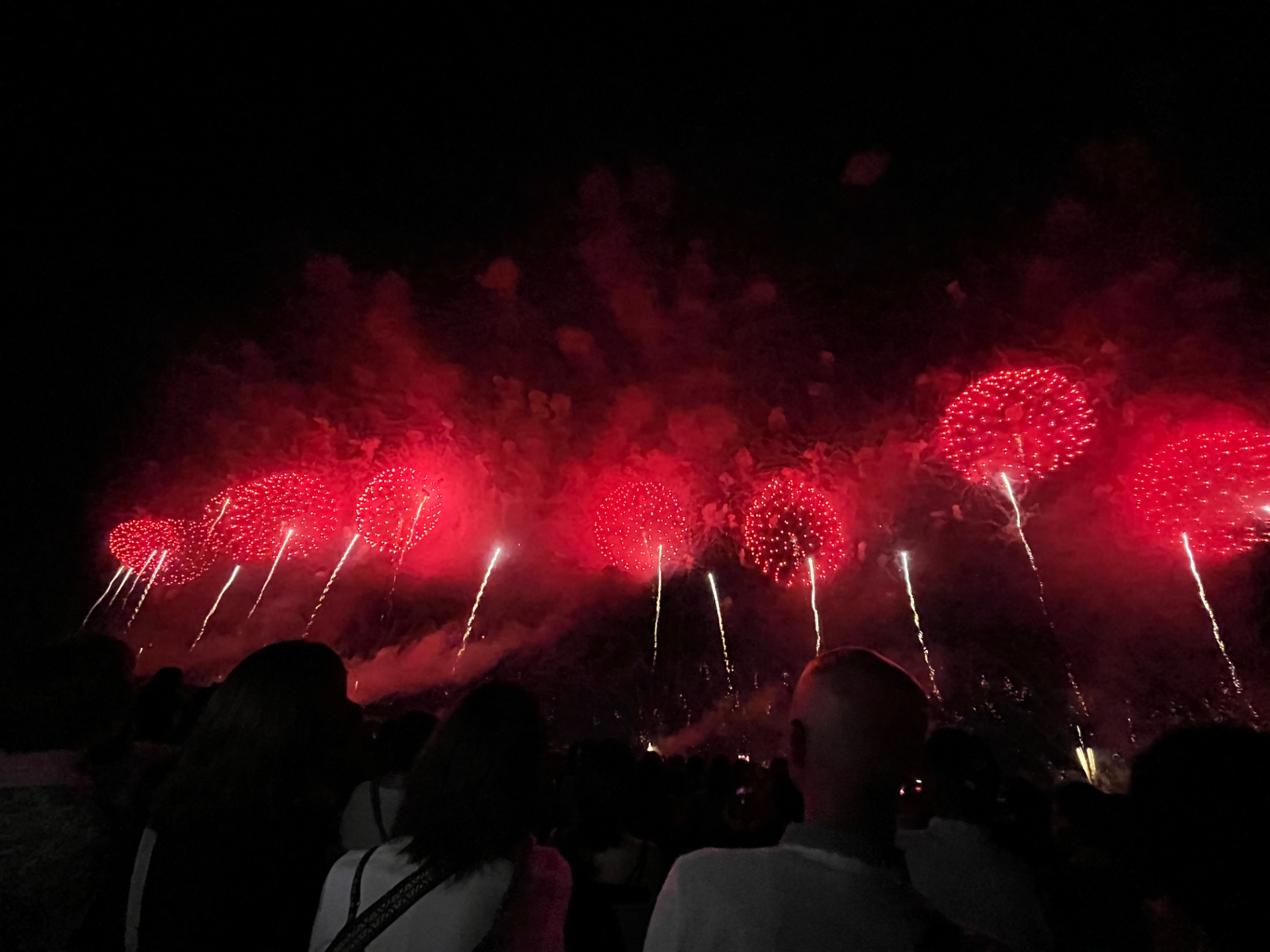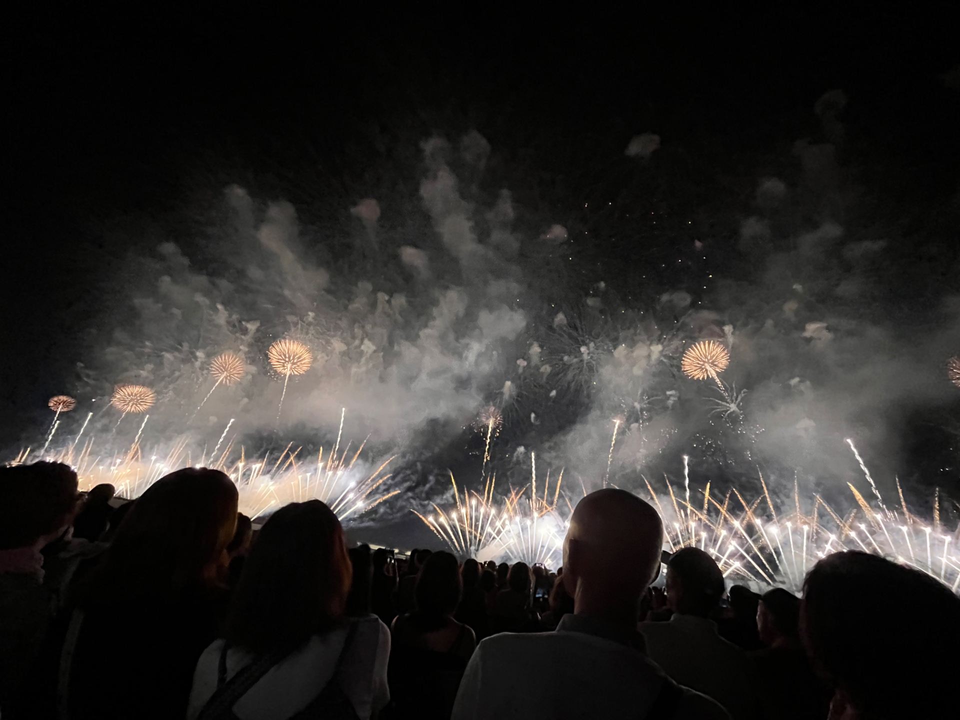 観覧席が打ち上げ場所から近いこともあり、花火と音の大きさには圧巻です。