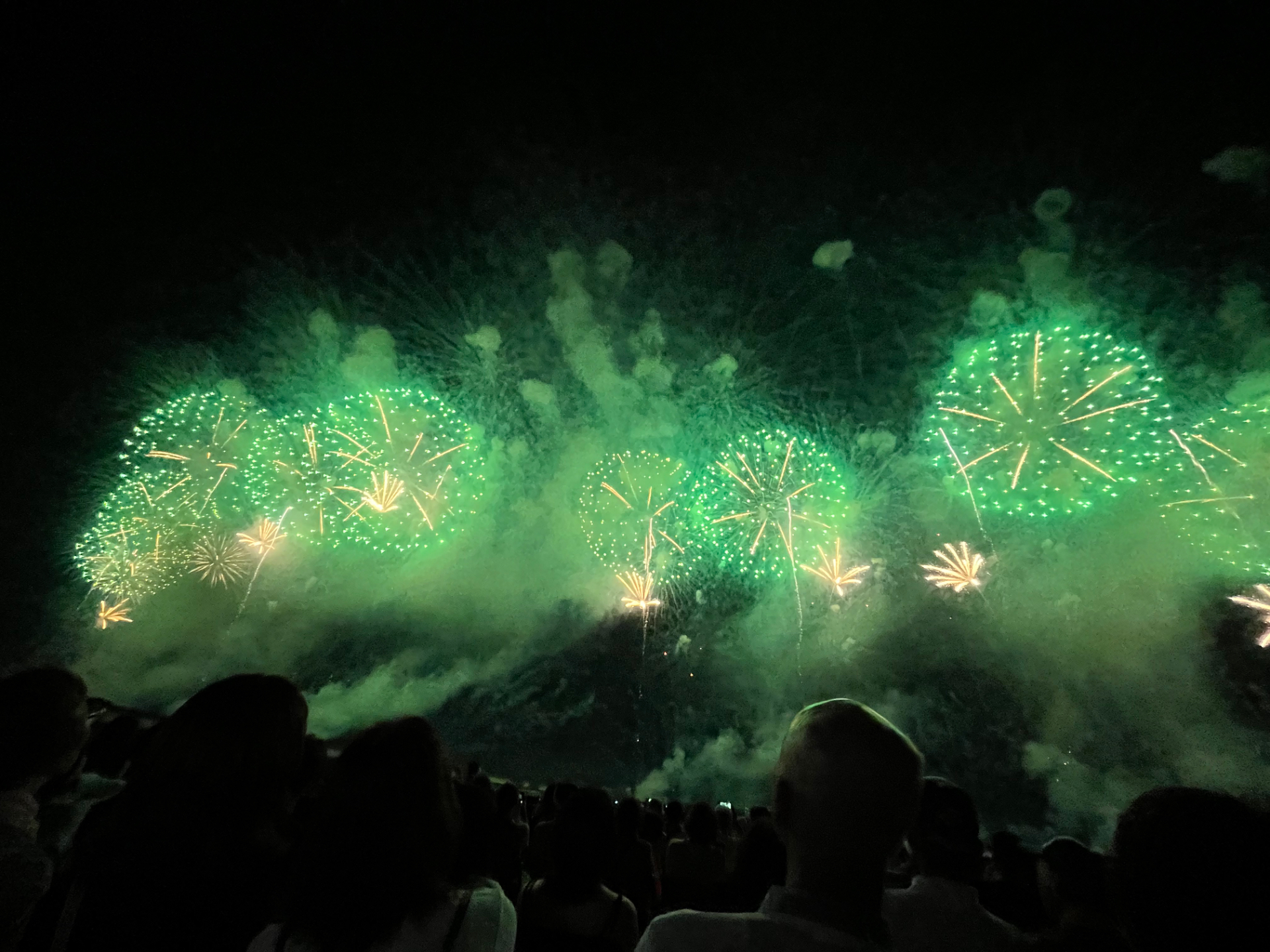フェニックスは、視界におさまらないので、右見て左見て。花火を見ているだけで涙が勝手に出てきます。