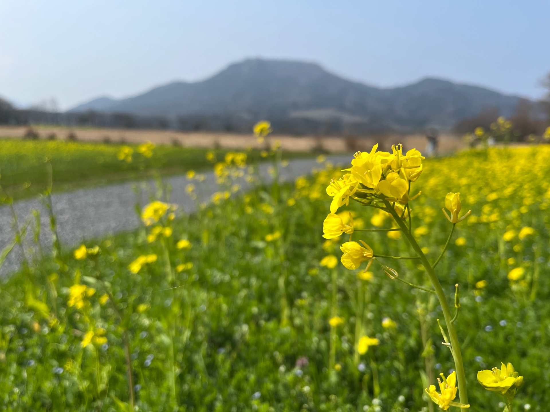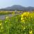 角田山を正面に望む景色がいいところですが、今の時期は菜の花が一面に咲いていて、黄色いじゅうたんが広がっていました。