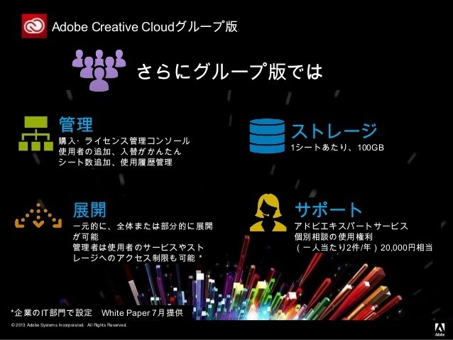 法人版の方が高いので、もう少し「Adobe Creative Cloudグループ」のメリットを高めてほしいです。ね、Adobeさん。