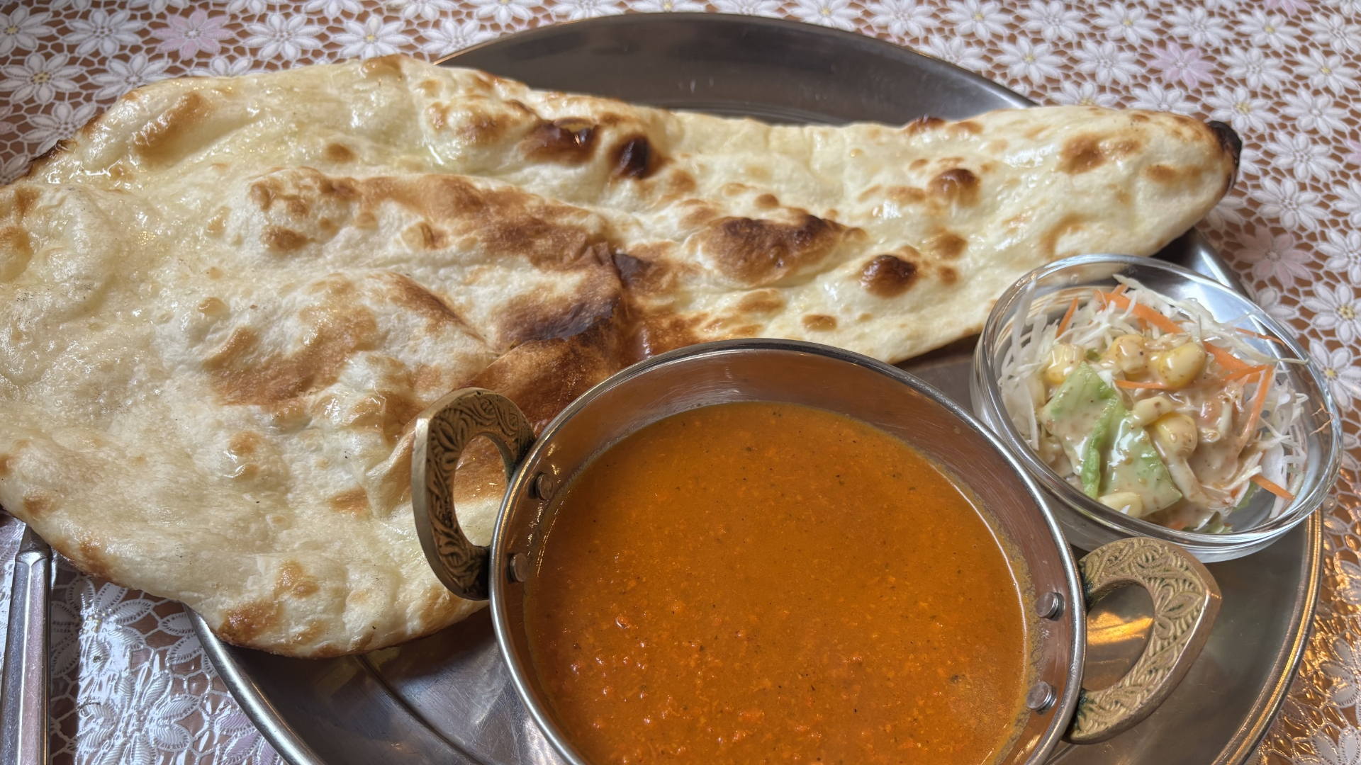 カレーナンとサラダがセットになっているルンビニランチにしました。
