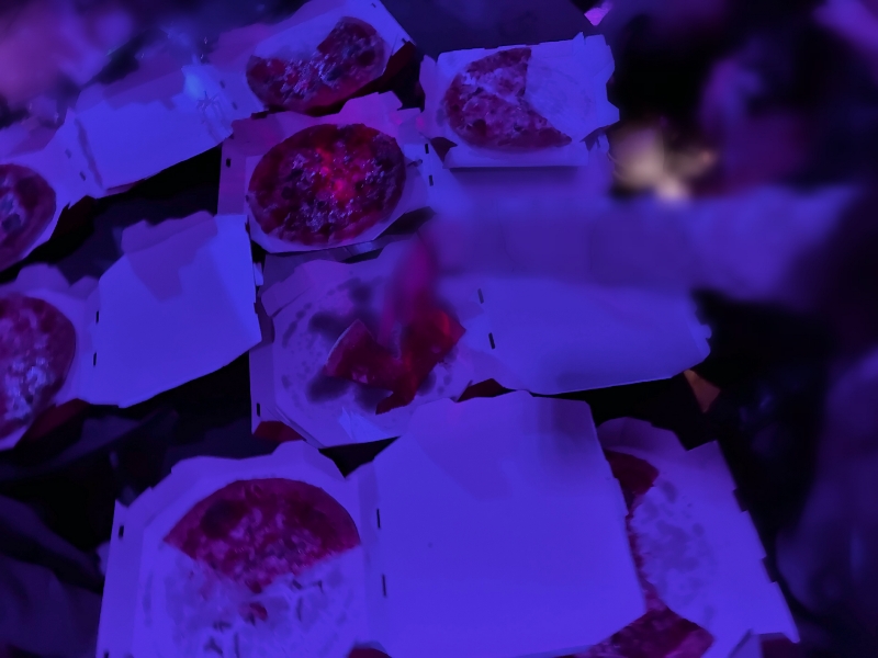 ライブが終わると、ライブハウスは「さっきまで歌っていたラッパーの奢りでラッパーと一緒にピザを食べる謎の集会」に早変わり。