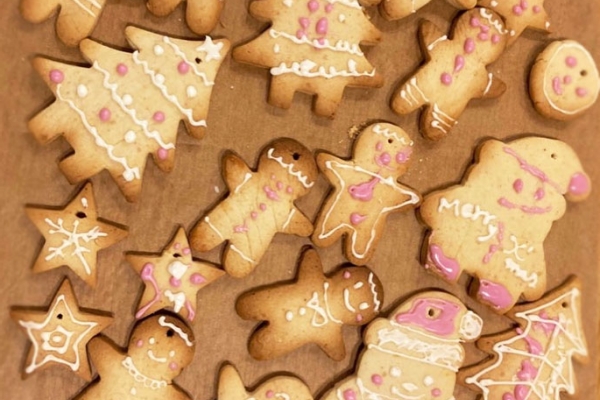 気づくと12月に入りました。 今年もあとわずかです。 寒さに向けて体が熱や栄養や脂肪を貯蓄しようと やたらと頑張っちゃう時期です。 ショッピングモールも少し前はハロウィンだった飾りも イルミネーションが素敵なクリスマス仕様に変わりましたね☆ 我が家でもツリーが登場しました。 今回は飾りにお菓子を追加! ジンジャーやシナモンを加えて 堅めに焼いたクッキーに アイシングをしてみました。 アドベントカレンダーのように 毎日どれを食べようかな♪と 子どもとジャンケンしながら楽しんでます^^
