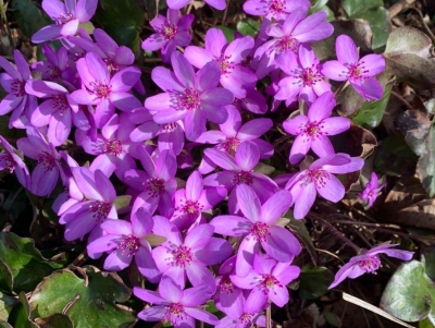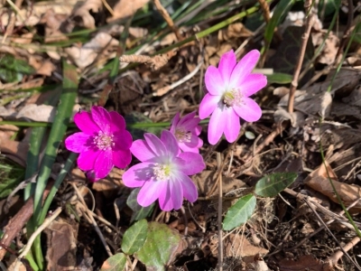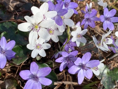 白・青系・ピンク系の優しい色合いの雪割草を眺めながらの登山は、疲れを感じさせないので楽しく登ることができます。