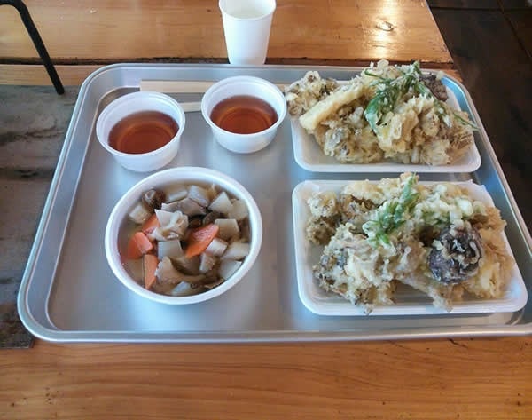 きのこ天ぷら盛り合わせときのこのっぺい汁を注文!